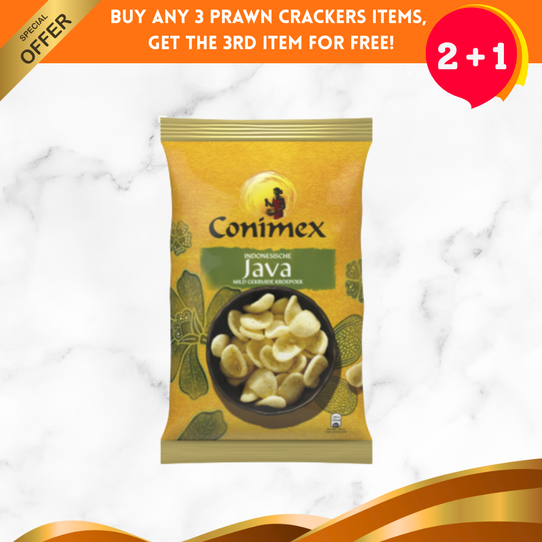 Buy any 3 prawn cracker products at Ducthshop, get 50% OFF* the 3rd item!