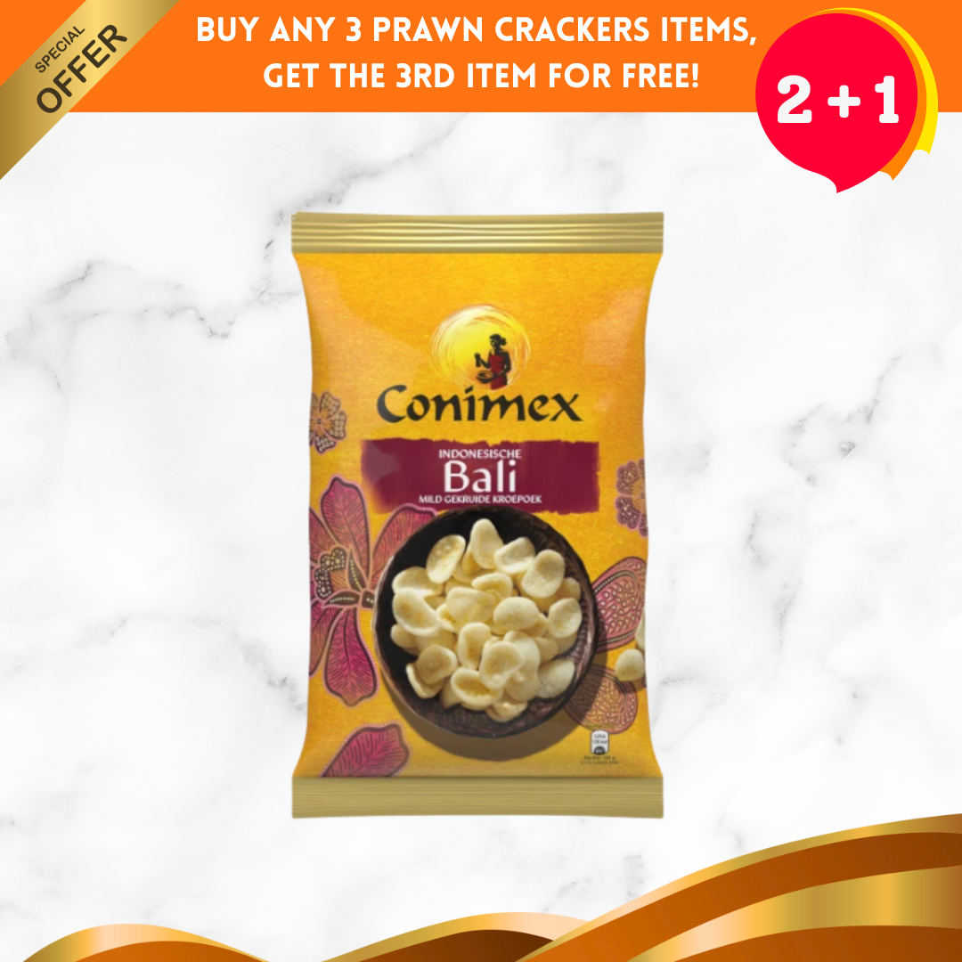 Conimex Bali Prawn Crackers is mildly seasoned according to an authentic Balinese recipe. The prawn crackers are made from tapioca flour and fresh shrimp. Conimex Prawn Crackers Bali is traditionally kneaded, baked in 100% sunflower oil and seasoned according to Balinese recipe. Bali prawn crackers are the crunchy side dish or snack.