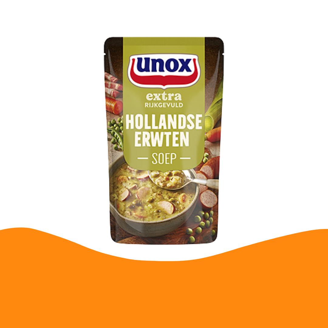 This full-flavoured Dutch pea soup is a delicious, tasty soup from the traditional Dutch brand Unox. The soup is ready in no time! Heat the pea soup in a pot, do not bring to the boil, or heat it in the microwave at 750 watts for 2.5 minutes and stir again halfway through.