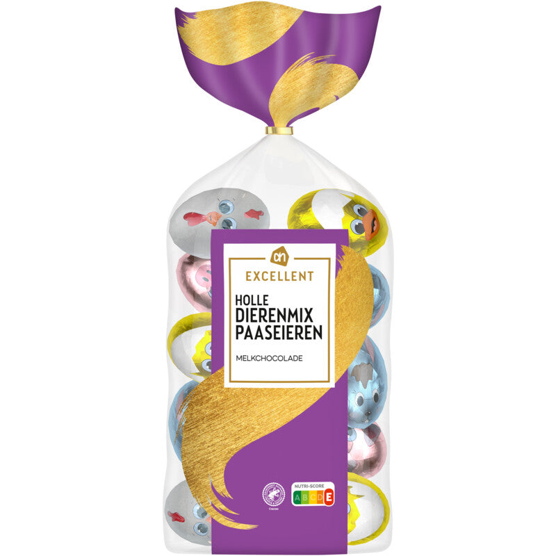 AH Excellent Hollow Animal Mix Milk Chocolate Easter Eggs / Paaseieren Animal Mix Melkchocolade 260 gram