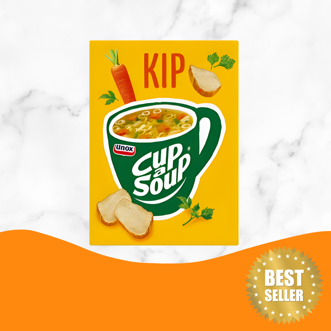 Unox Cup-a-Soup Chicken: a quick, savoury pick-me-up to recharge and keep you going! Packed with tender chicken pieces, along with flavourful carrot, leek, and parsley for an optimised taste.