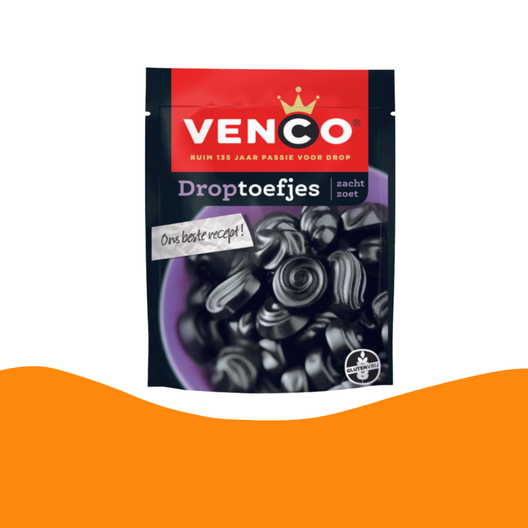 Venco Droptoefjes are soft and sweet licorice (drop) with a full licorice flavour and a nice bite.