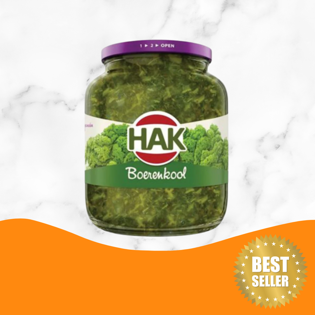 Hak Boerenkool 是來自荷蘭的經典羽衣甘藍(Kale)罐頭,選用新鮮羽衣甘藍切碎製成,保留蔬菜的天然營養和爽脆口感。羽衣甘藍富含膳食纖維、維他命C及多種礦物質,是健康飲食和素食者的理想選擇。這款即食蔬菜非常適合用來製作荷蘭傳統菜式「Stamppot」(薯蓉拌菜),亦可加入湯品、炒菜或沙律中,為日常餐桌增添營養和色彩。