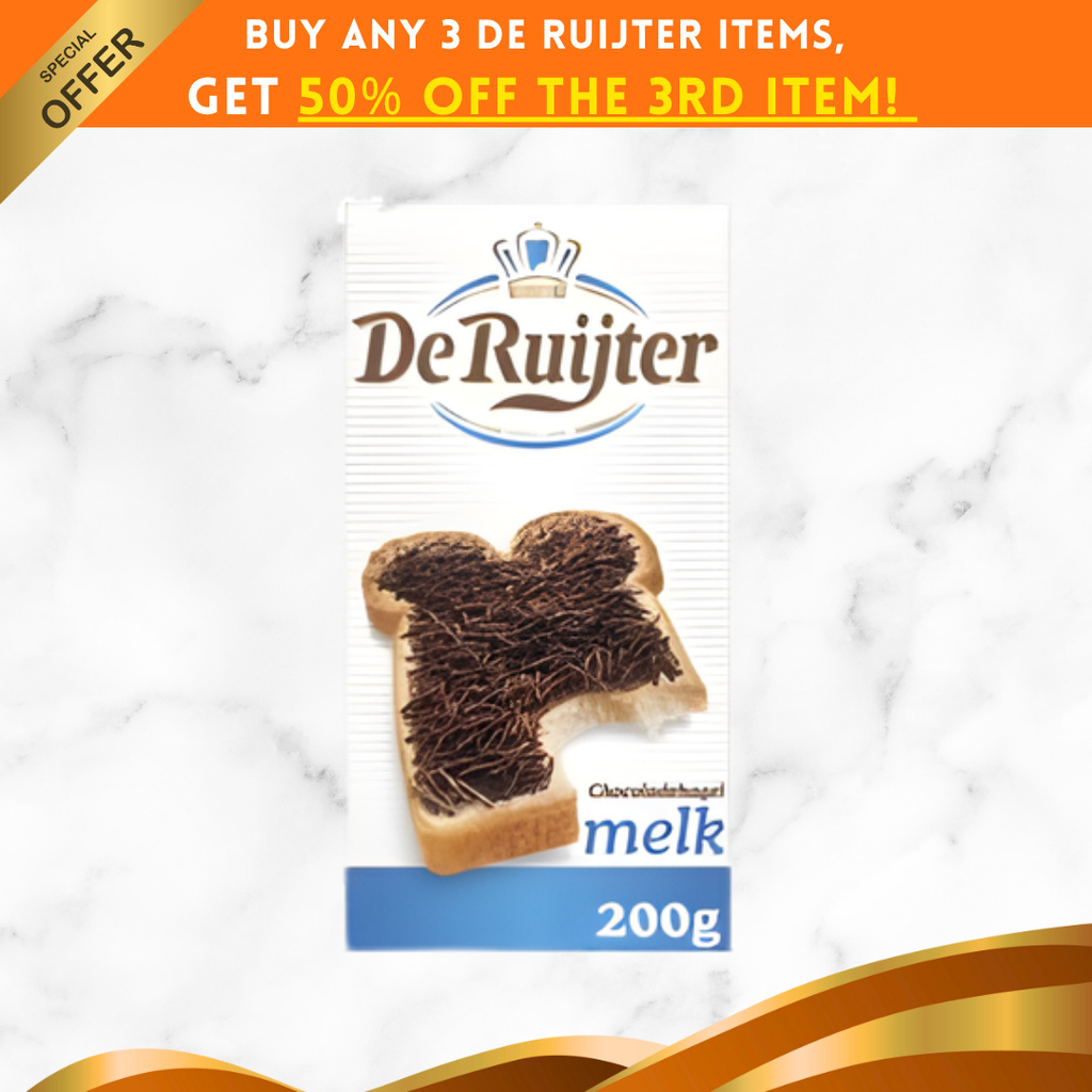 多款食用朱古力裝飾及裝飾糖粉推介,人氣產品包括 De Ruijter 牛奶朱古力片Venz Beer Hagelslag 牛奶雲呢拿朱古力粒,完美點綴蛋糕、鬆餅或杯子蛋糕等烘焙美食。想慶祝特別日子?選購經典的 De Ruijter 粉紅白色糖粒(荷蘭語稱為 beschuit met muisjes),既酥脆又童趣。