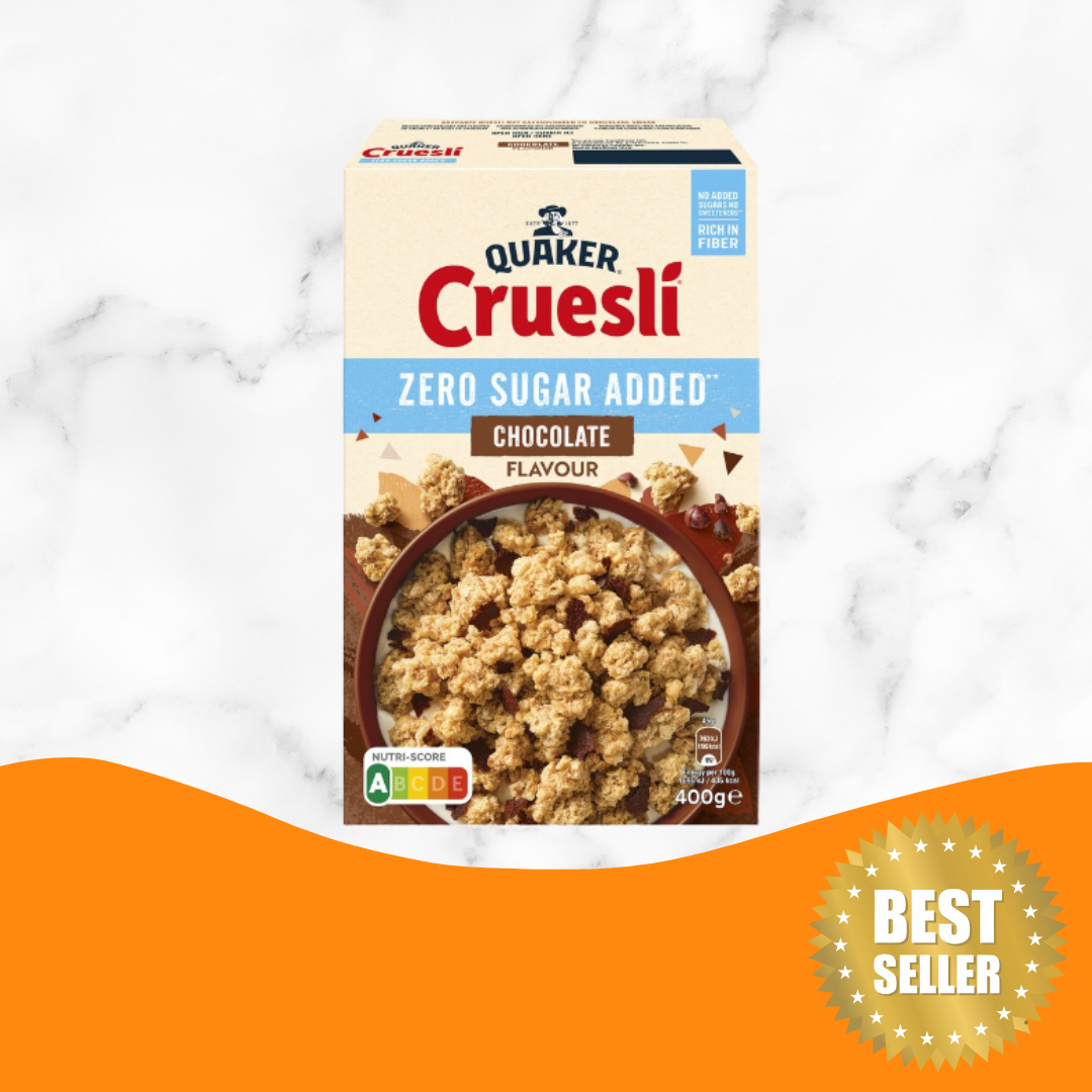 Quaker Cruesli Chocolate 是荷蘭最受歡迎的早餐穀物之一,將香脆燕麥片與濃郁朱古力脆粒完美結合,帶來香甜而不膩的口感。每一口都充滿烘焙穀物的酥脆與朱古力的濃香,是能量滿滿又美味的早餐或下午茶選擇。可搭配牛奶、乳酪或水果享用,快速補充營養與活力。Quaker 以健康天然穀物聞名,是荷蘭家庭日常早餐的信心之選。