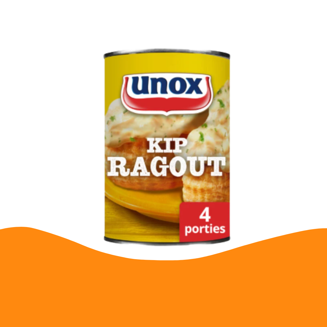 Unox Ragout Kip 是來自荷蘭的經典雞肉燴醬,以嫩滑雞肉、奶油和香料慢煮而成,質地濃郁幼滑,味道香醇。這款雞肉燴醬可直接加熱食用,適合配搭酥皮盒(pasteitje)、麵包、飯或意粉,是荷蘭家庭常見的快捷主菜或配菜選擇。